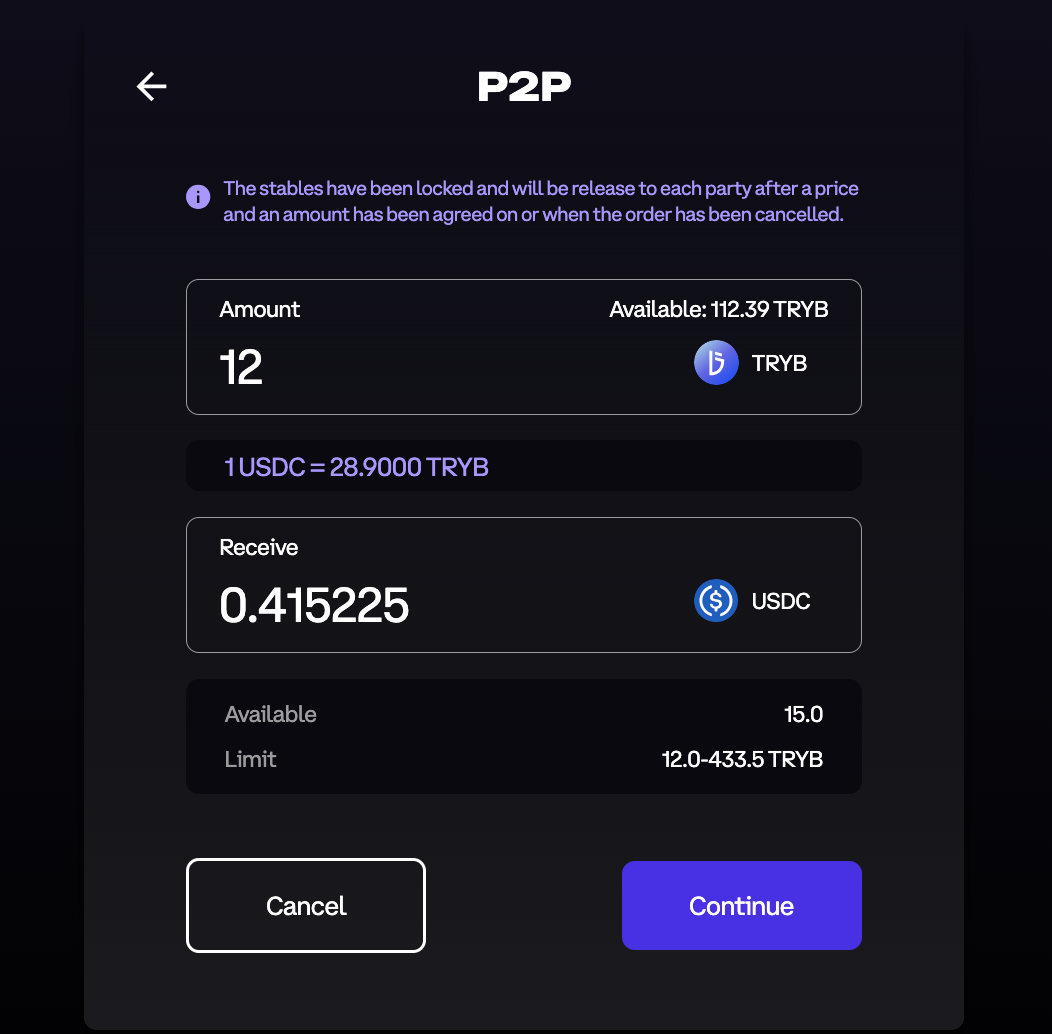 4. Once you accept an offer that suites you, input the amount you want to sell and click **Continue**.