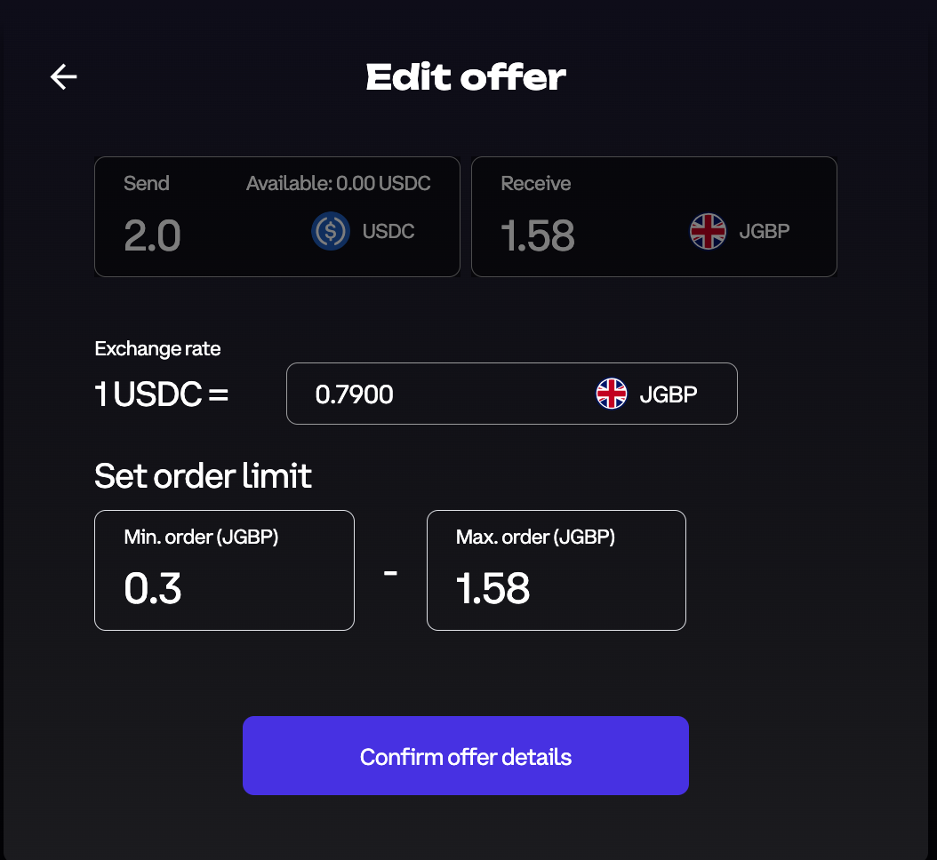 ***Note**: You can only change the exchange rate and minimum order limit.*
